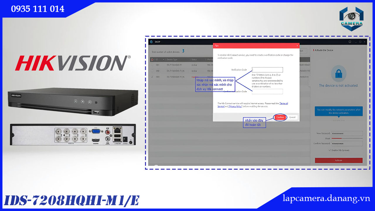 Nhập mã xác minh cho Hik-connect: Mã minh phải dài từ 6-12 ký tự, có phân biệt chữ hoa, thường. Xong nhấn Confirm -> nhấn Active.