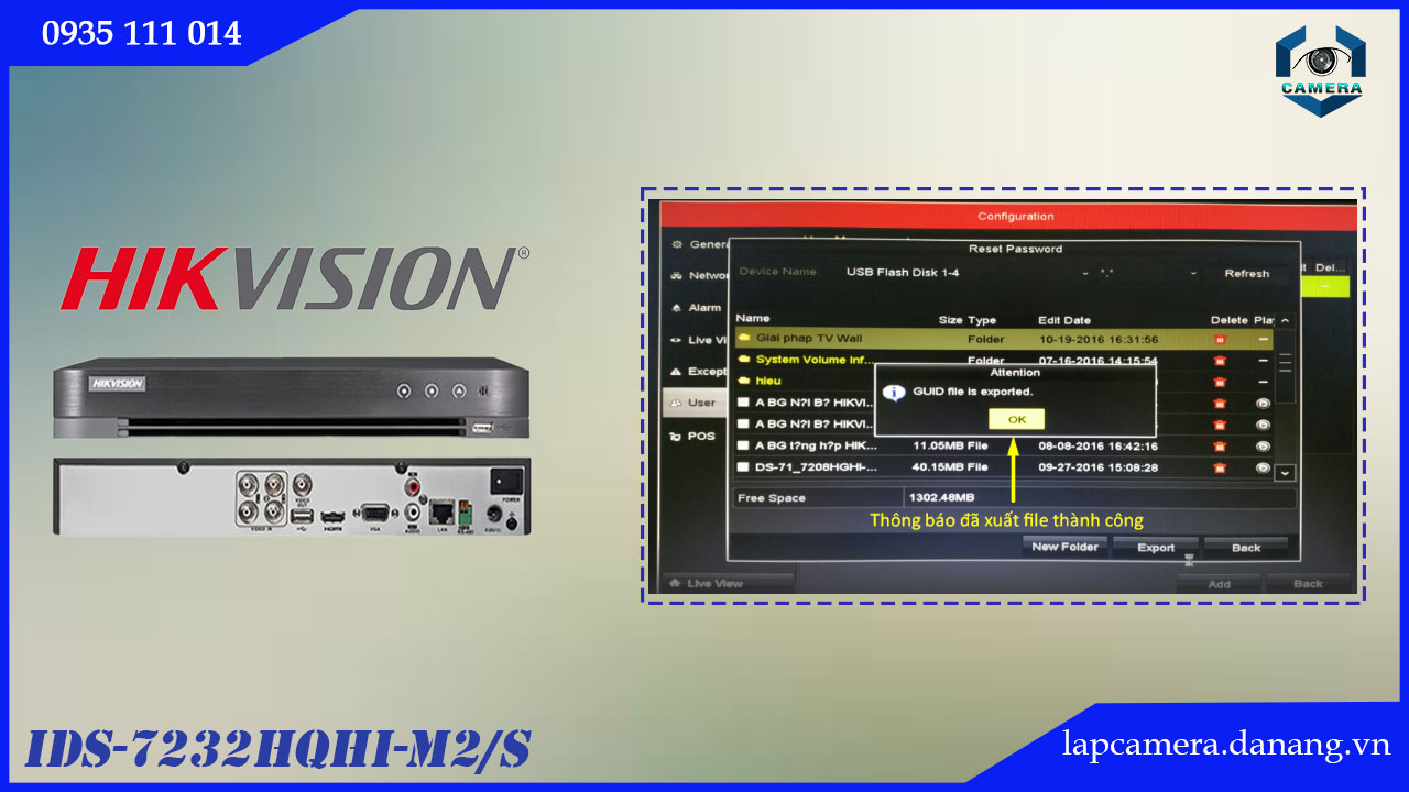 - Khách hàng tạo sẵn file reset mật khẩu ( GUID ) bằng màn hình tại chỗ ( sử dụng USB cắm vào đầu ghi hình )